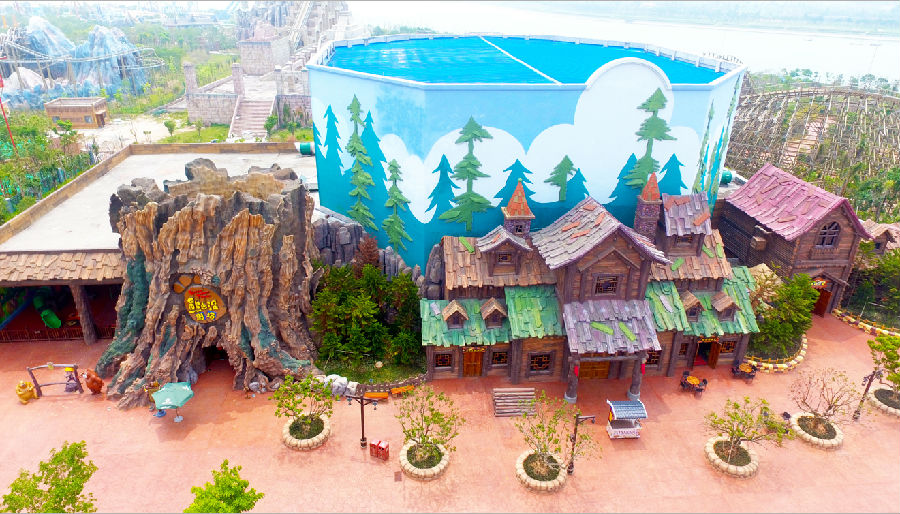 丛林、房屋、树洞……这里俨然是一个真实的童话世界!从《熊出没剧场》的建筑外观开始,设计师就依据 “熊出没”动漫作品原型,尽心打造剧场的实景。在剧场门口,清新自然的原生态丛林风扑面而来,游客们在走进剧场前,就可以提前感受原汁原味的“熊出没”世界。